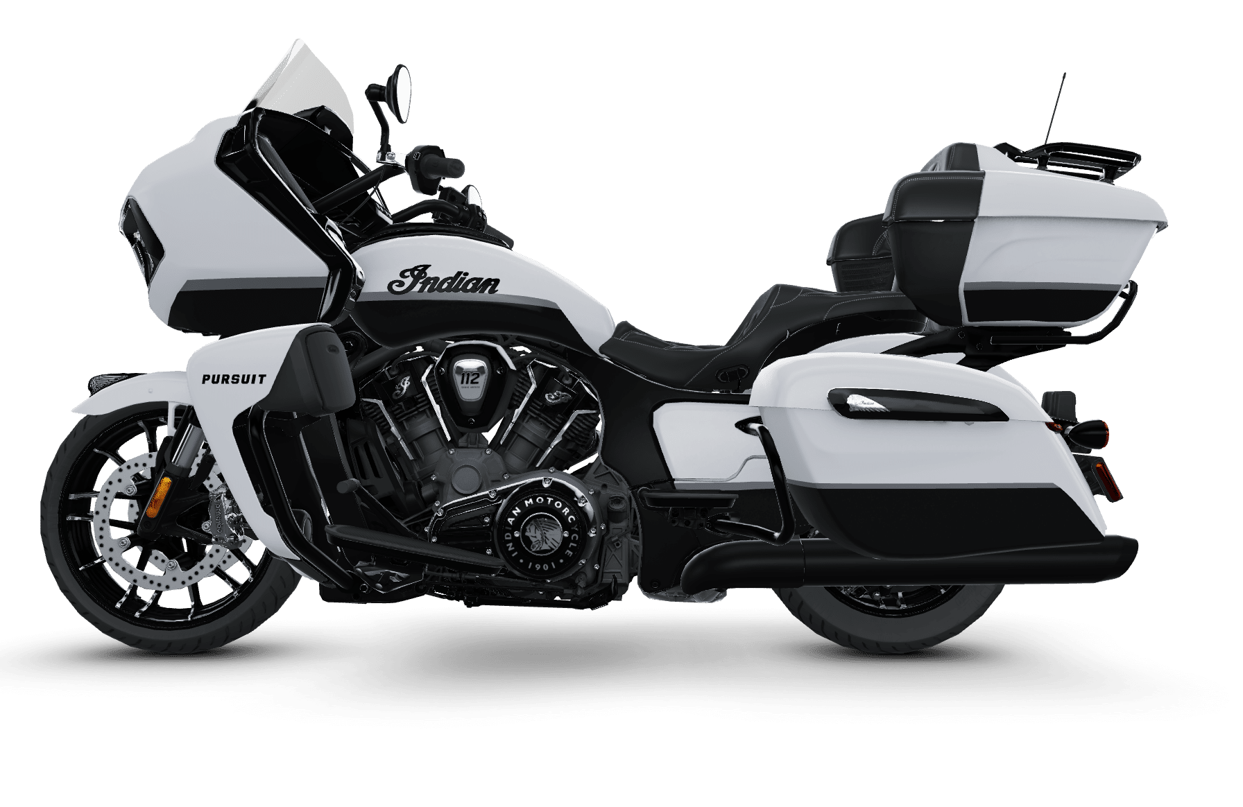 Motorcycles of Dulles, Northern Virginia's exclusive BMW, Triumph, Indian, Royal Enfield, MV Agusta, and Zero Motorcycle Dealership is pleased to offer this brand new 2025 Indian Pursuit Dark Horse 112 in Ghost White Metallic!