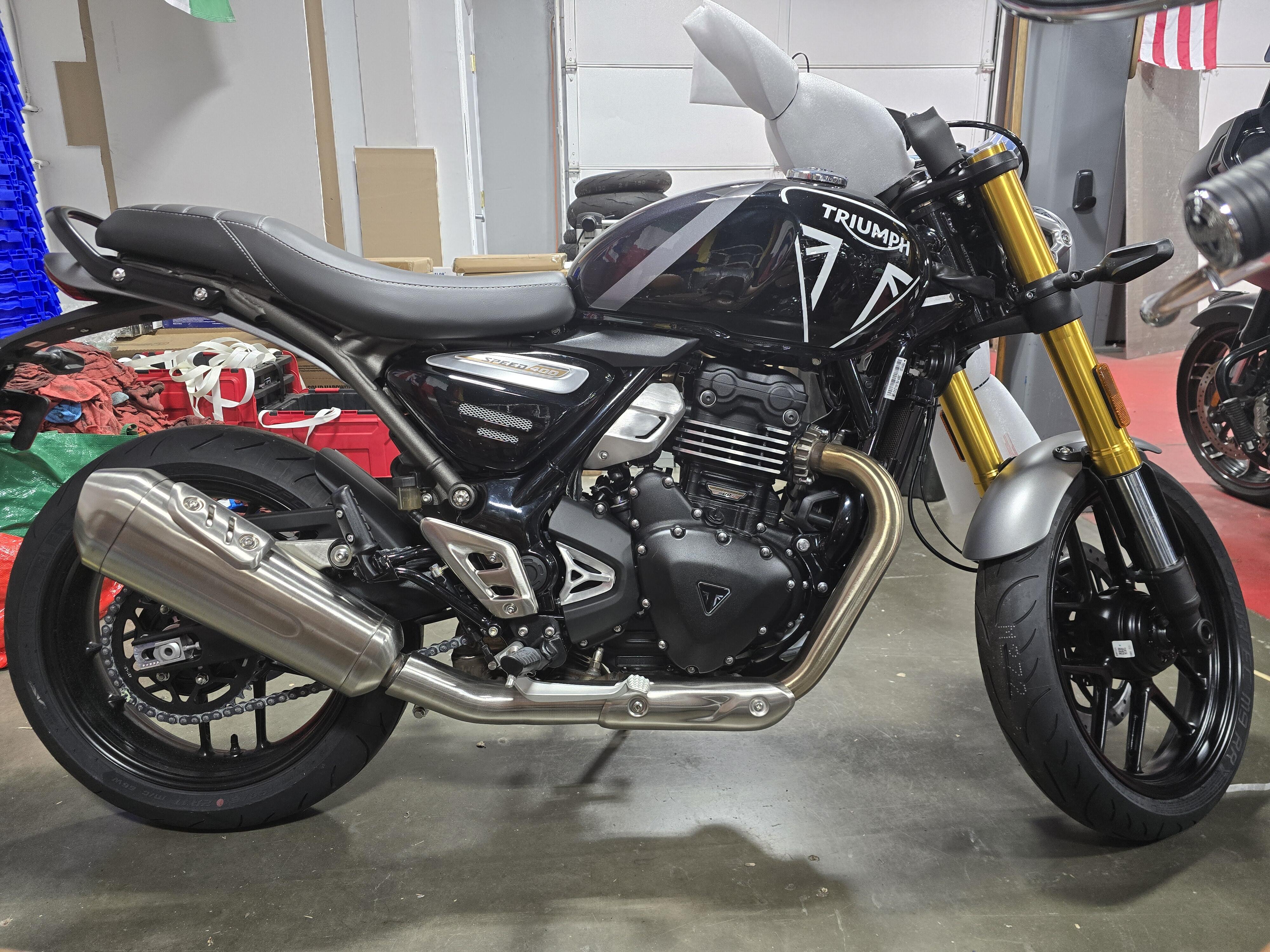 Motorcycles of Dulles, Northern Virginia's exclusive BMW, Triumph, Indian, Royal Enfield, MV Agusta, and Zero Motorcycle Dealership is pleased to offer this brand new 2026 Triumph Speed 400 in Phantom Black!